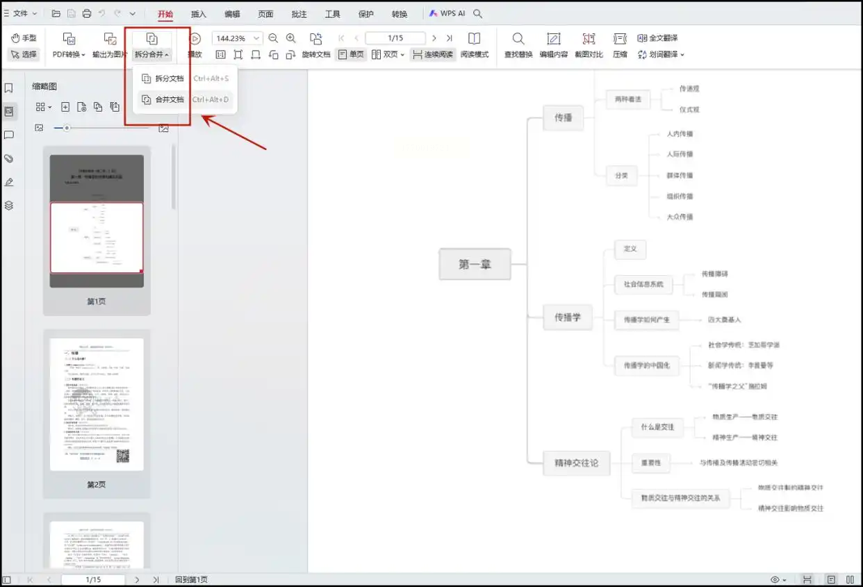 步骤一:使用WPS打开任意一个PDF文件,或直接启动WPS应用。在顶部菜单栏或功能选项卡中,找到“拆分合并”或类似命名的功能组,并在其中选择“合并文档”。
