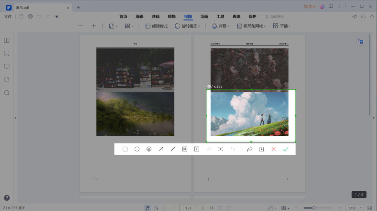 2. 定位图片:滚动到需要提取的图片页面,放大至合适比例。