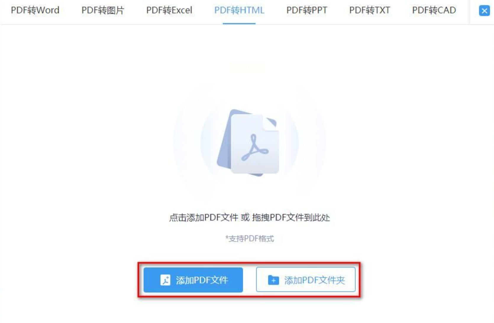 3.文件导入:点击“添加文件”按钮或直接将PDF文件拖入操作区,支持多文件批量导入(最多同时添加10个文件);