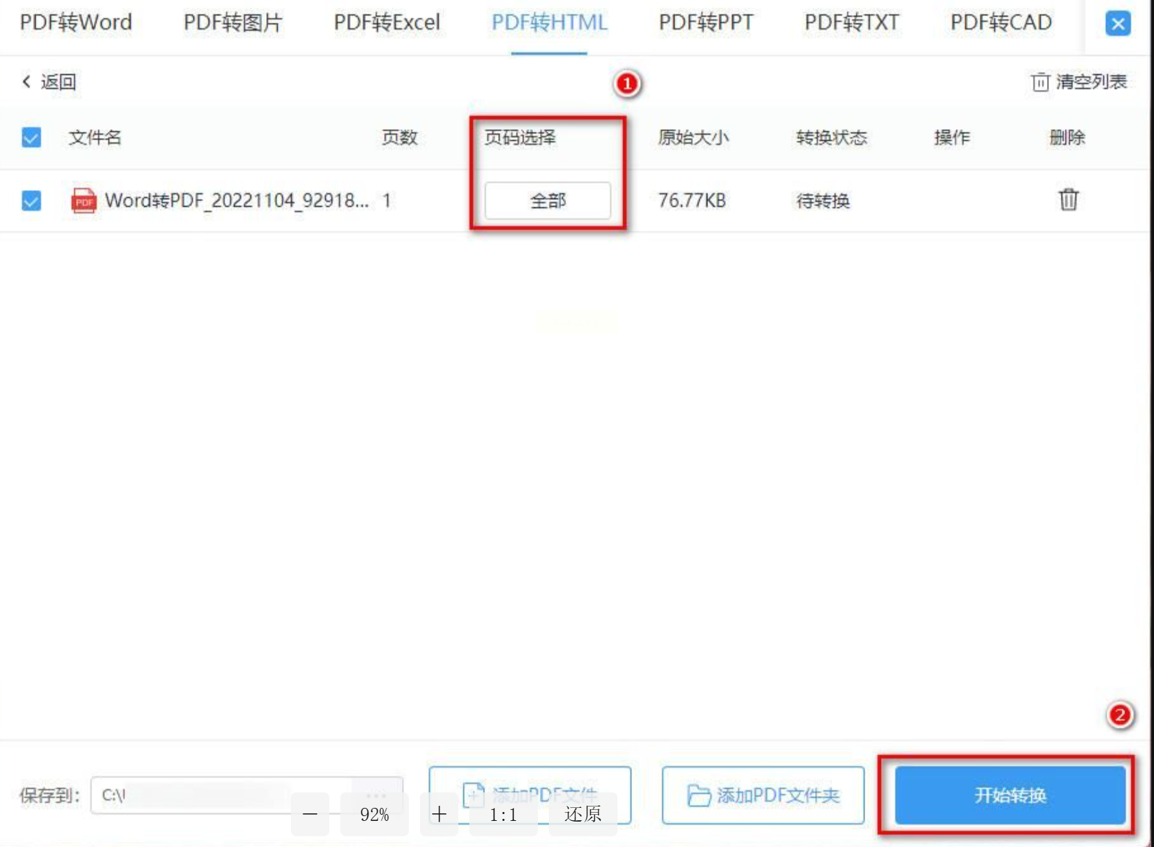 3. 精准转换:在“页码选择”区域勾选“全部”或手动输入需转换的页码(如3-10页),排除无关内容;
