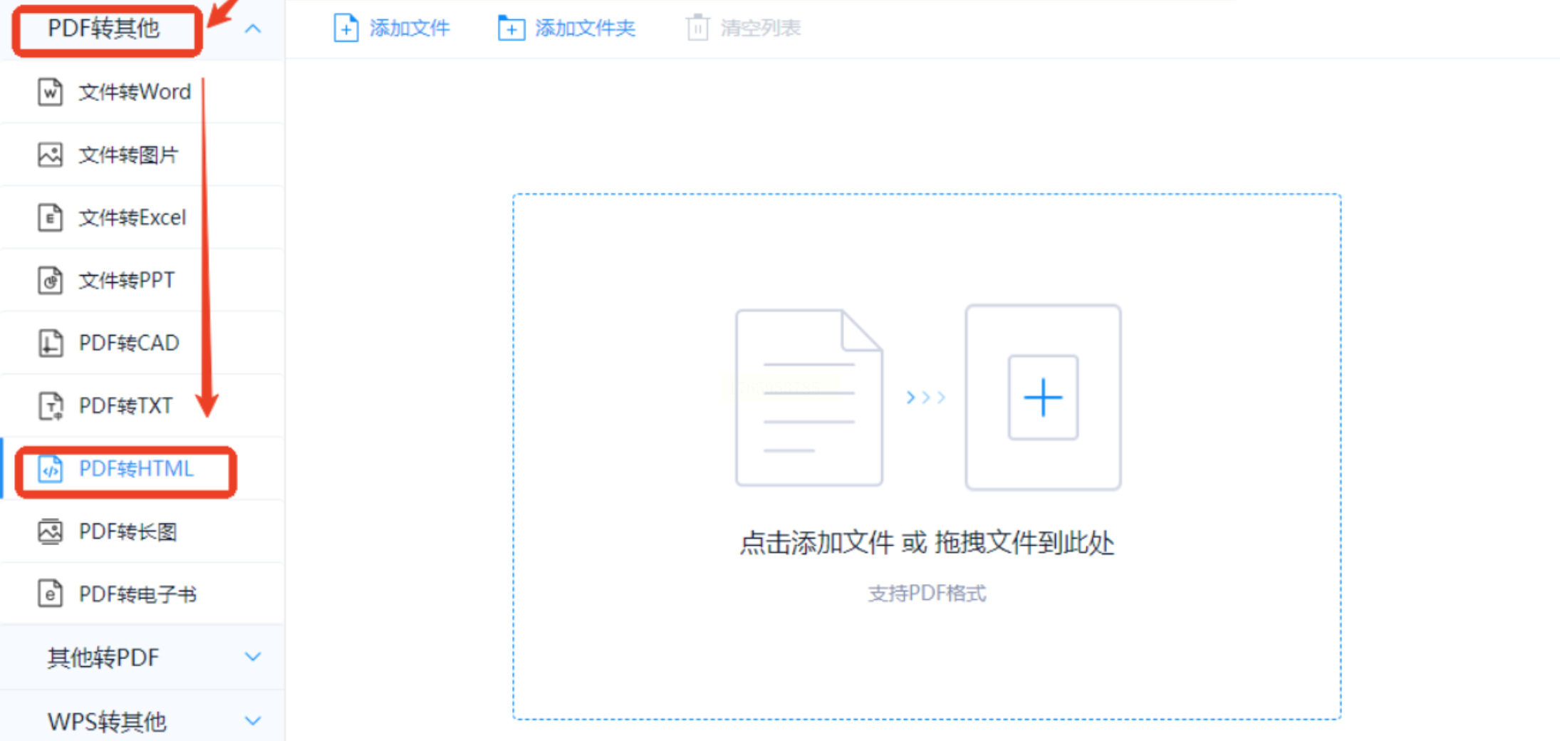 2. 格式定位:在左侧功能树中精准选择“PDF转HTML”选项,此步骤为必选操作,避免后续功能缺失;