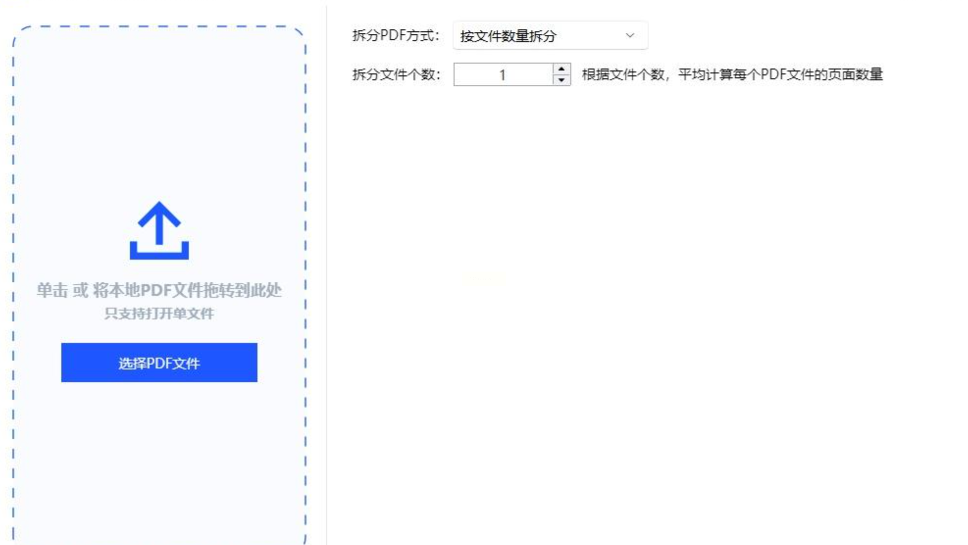 3. 文件导入后,右侧会出现拆分参数设置选项。这里你可以选择按页数拆分、按文件大小拆分或自定义页面范围拆分。根据你的需求选择合适的拆分方式。