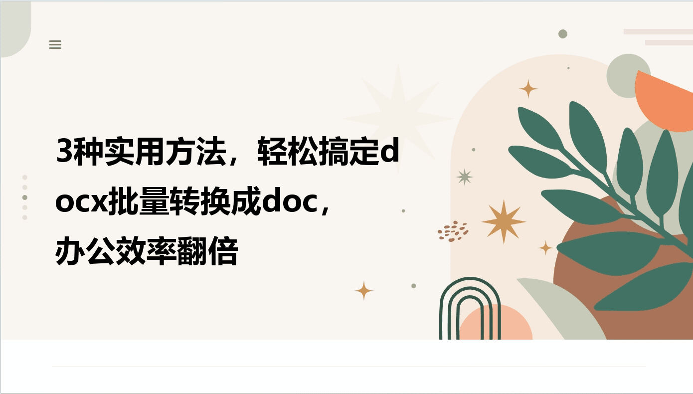 在日常办公场景中,文档格式兼容性问题常常成为效率拦路虎。当新版docx文件发送给使用旧版Word的同事时,格式错乱、内容丢失的情况屡见不鲜。尤其是在批量处理文档时,手动调整格式的繁琐程度远超想象,往往一份资料整理就要耗费大量时间。其实,借助专业工具就能轻松解决这类问题,无需复杂的代码知识或多软件配合,单个工具就能实现高效转换。本文将介绍3种Windows平台上的实用方法,帮助你快速完成docx批量转换成doc,让办公效率大幅提升。