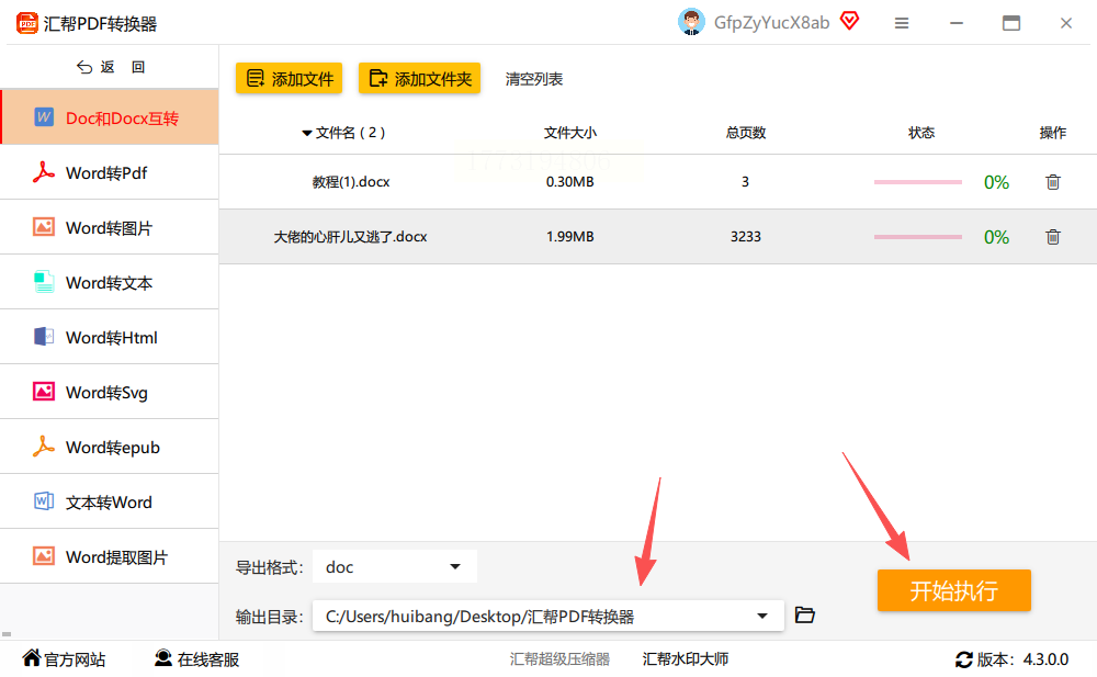 2. 左侧功能栏中选择「doc和docx互转」选项,界面会自动刷新