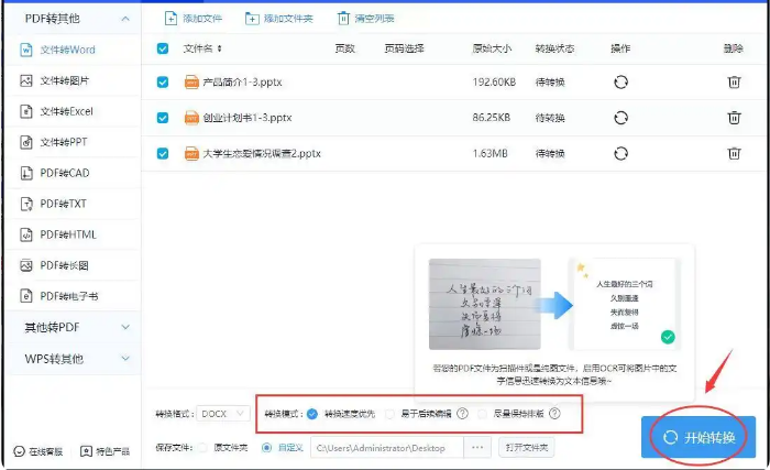 汇帮PDF转换器提供了专门的PPT转Word功能,支持批量操作且操作界面清晰,适合需要处理多个文件的用户。