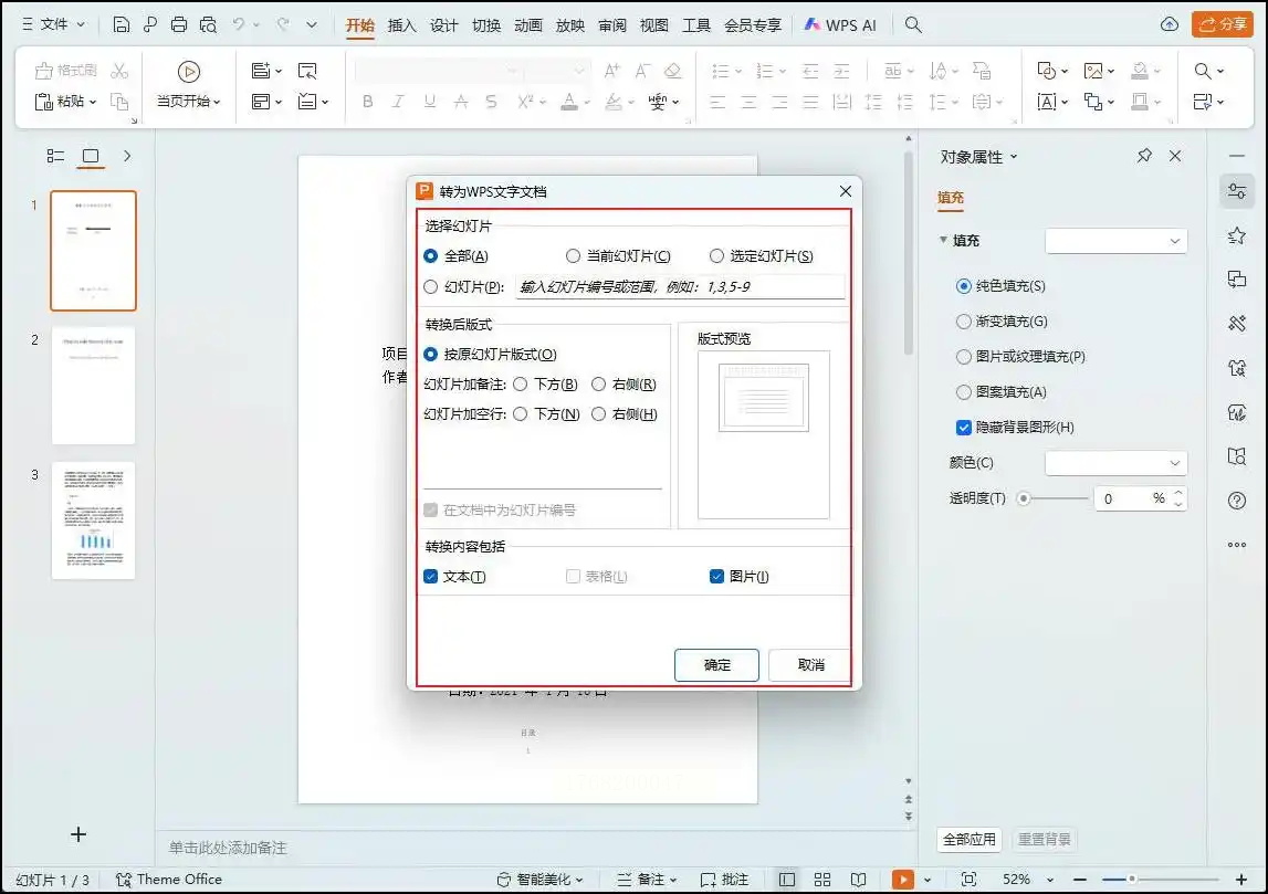 5. 转换完成后,检查生成的Word文档是否保留了原PPT的文本、图片和排版结构。