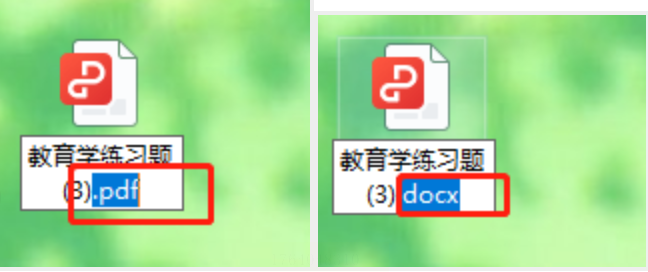 2. 把文件后缀名从“.pdf”改成“.doc”或者“.docx”。个人建议改成“.docx”,因为这是Word较新版本使用的格式。
