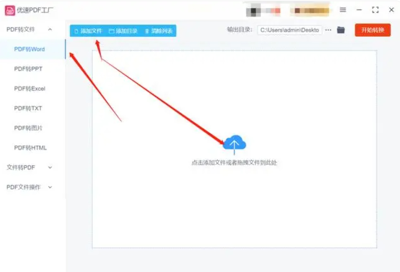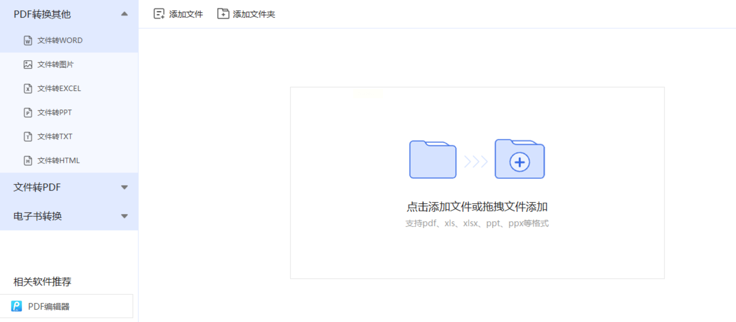 第四步:现在开始添加要转换的文件。点击中间的“添加文件”按钮,从电脑里选择需要转换的PDF文档。有个很实用的功能——你可以一次性选择多个文件,实现批量转换。如果觉得点击添加麻烦,也可以直接把PDF文件拖拽到软件界面的指定区域。
