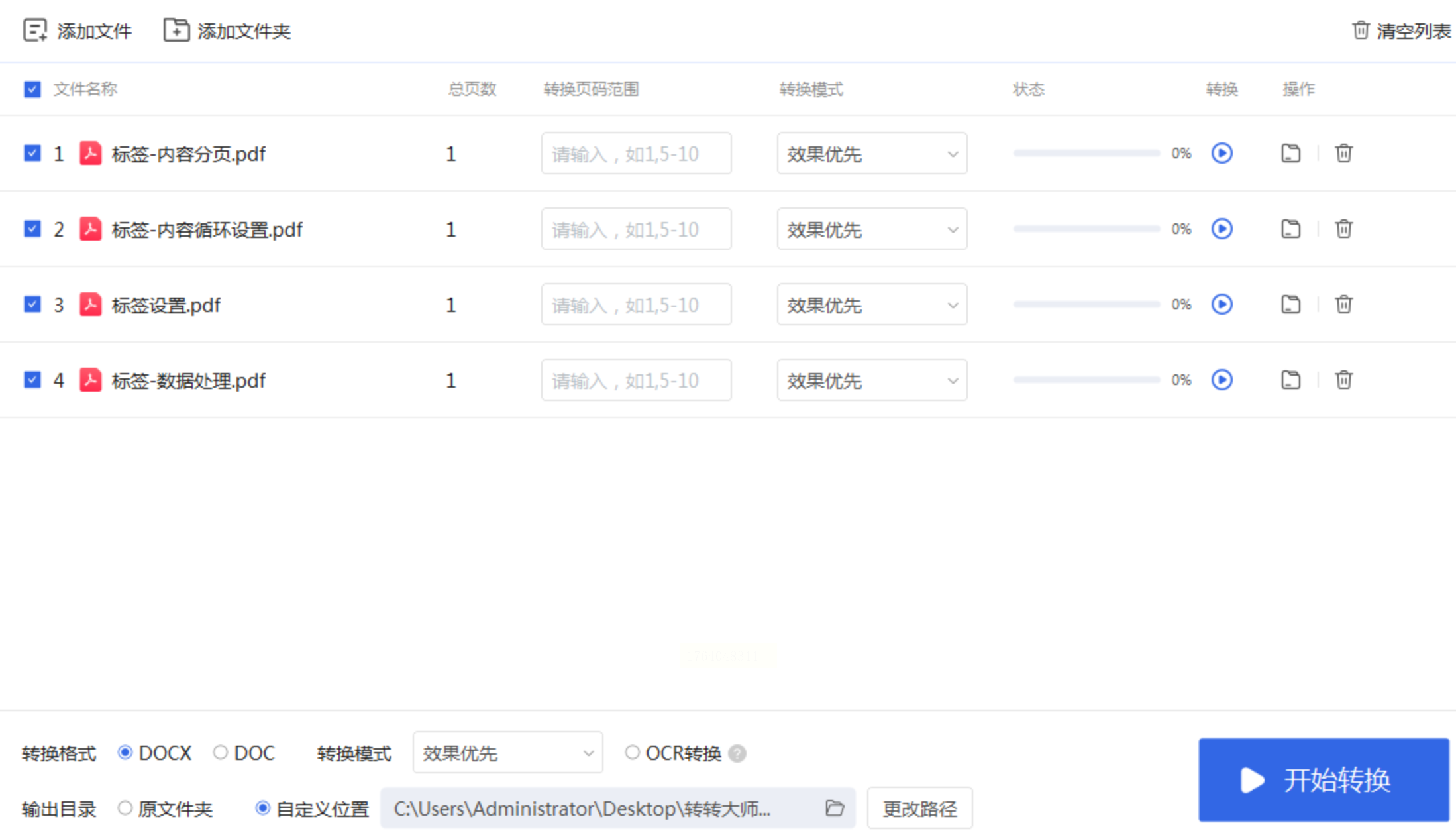 第五步:在开始转换前,建议设置一下输出目录。就是转换后的Word文档要保存在哪里,默认一般是桌面,你也可以点击“浏览”选择其他文件夹。这样方便之后查找处理好的文件。