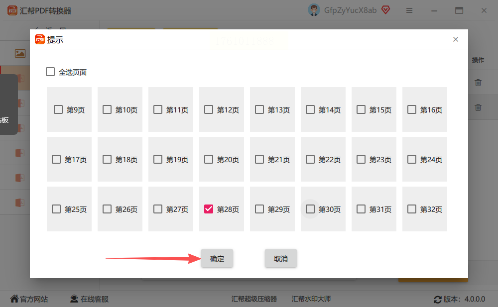 步骤四:页面预览界面中,自由勾选需提取的页面,点击“确定”确认选择。