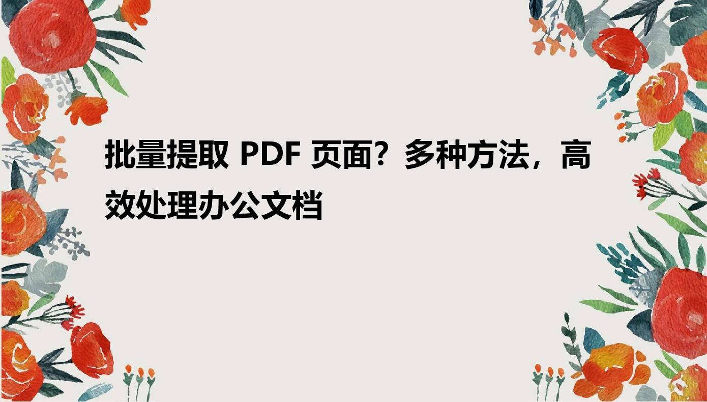 在现代办公环境中,PDF文件因其格式稳定、兼容性强而广受欢迎。然而,处理PDF文件时,提取特定页面成为常见需求。无论是整理报告、归档资料,还是分享部分内容,快速准确地提取页面能大幅提升工作效率。本文将详细介绍多种提取PDF页面的方法,帮助读者灵活应对不同场景。