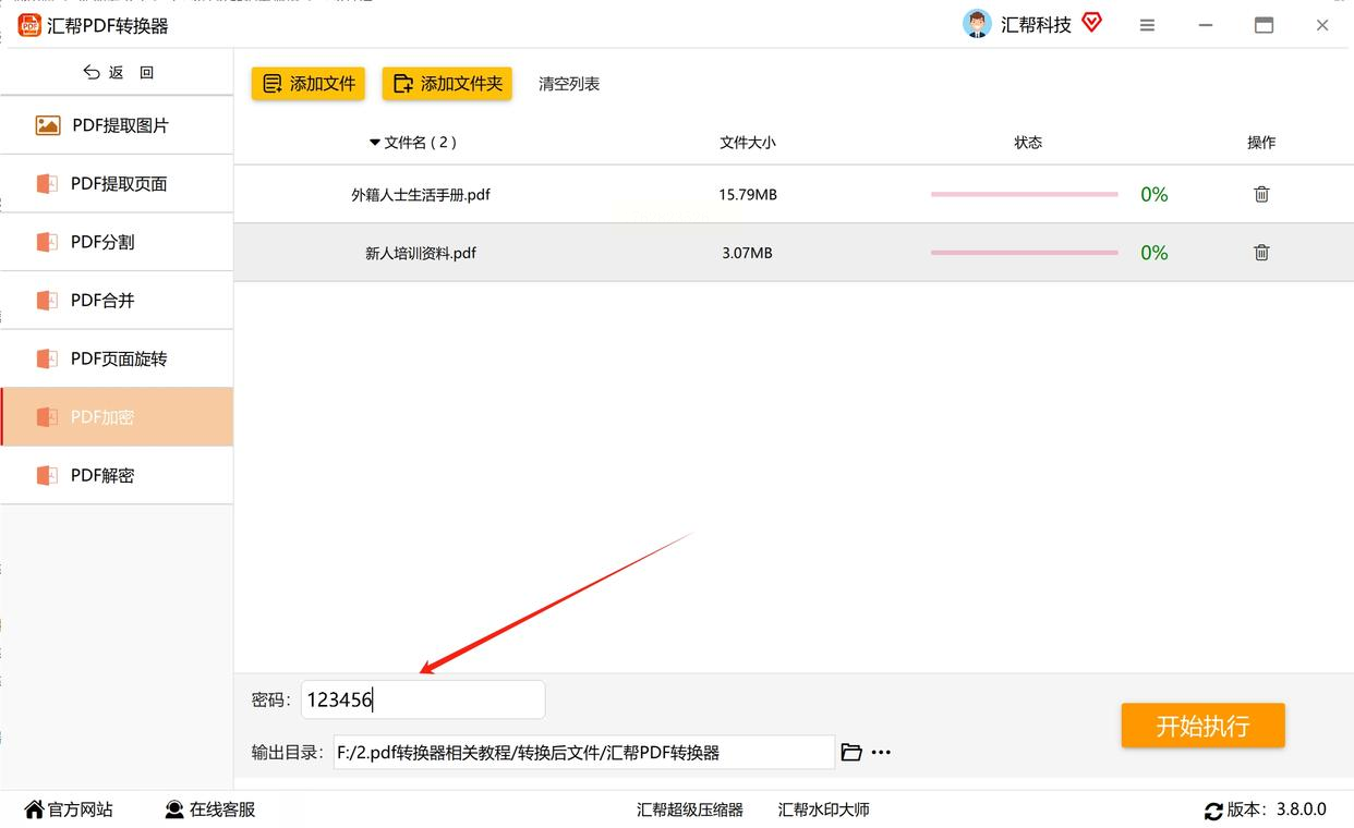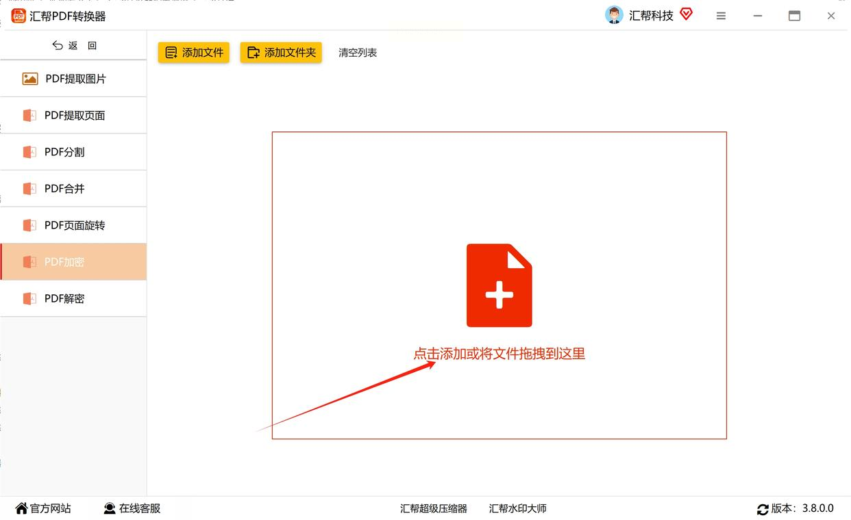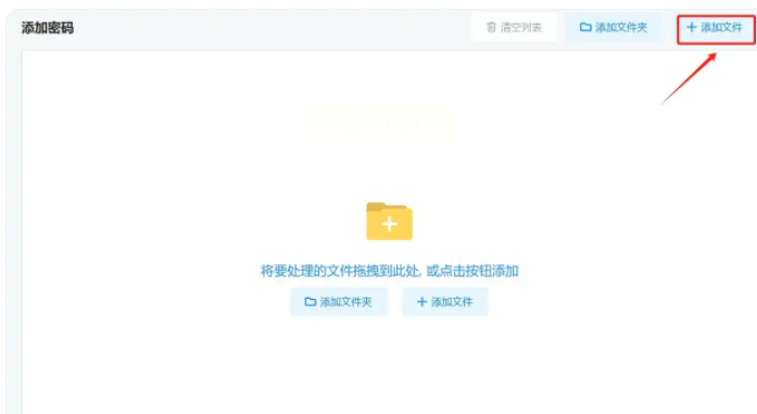 2. 添加文件:点击界面中间的"添加文件"按钮,或者直接将需要加密的PDF文件拖拽到指定区域,支持单个或多个文件批量导入。