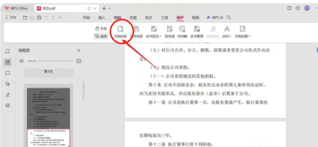 2. 进入保护功能:点击顶部菜单栏的"文档"选项卡,找到并点击"保护文档"按钮,在下拉菜单中选择"加密文档"。