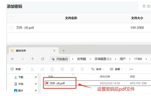 3. 设置密码:在页面下方的密码输入框中填写打开密码,确认无误后勾选"加密完成后自动下载"(或选择其他存储方式)。