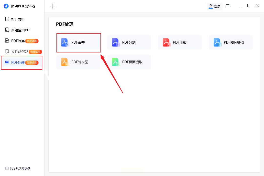 步骤一:打开软件后,点击左侧「PDF处理」→「PDF合并」选项卡。