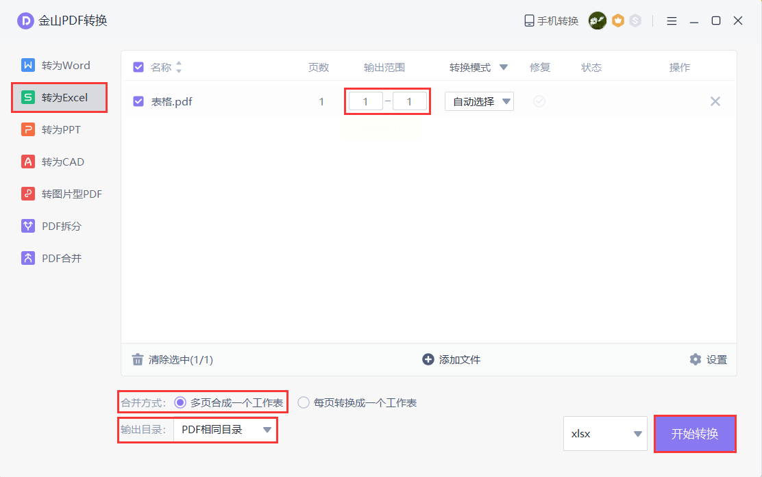 第二步,进行精细设置。 点击后,会弹出一个转换设置的对话框。这里要注意几个关键点:首先,在转换格式里,一定要选择“转为Excel”。然后,看看“输出范围”,如果你的PDF有好多页,但只有其中几页有表格,你可以指定转换这几页,比如输入“2-5”,这样更高效。接着,关注“合并方式”,如果表格数据是连贯的,可以选择“多页合成一个工作表”,这样所有数据就在一个Sheet里了;如果每页表格是独立的,那就选“每页转换为单独的工作表”。最后,设置好输出文件夹,别转完了找不着。