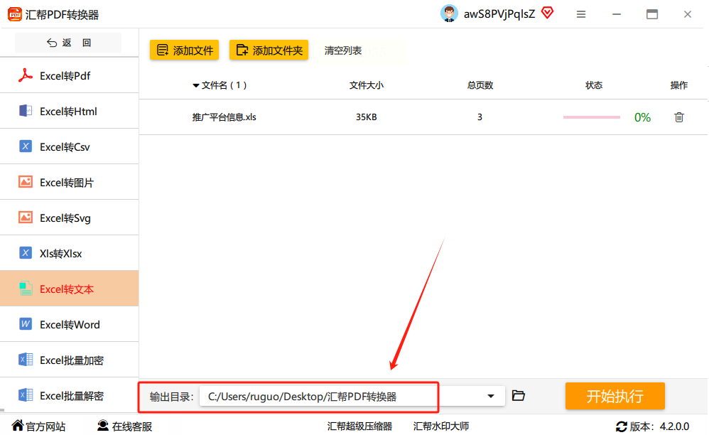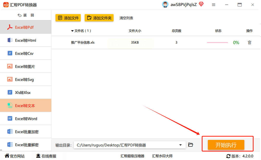 确认所有设置都对了,比如文件路径、格式这些,点"开始执行"按钮,软件就自己开始转换了。转换速度还挺快的,比如一个几十页的Excel表格,也就几秒钟就能转成TXT。