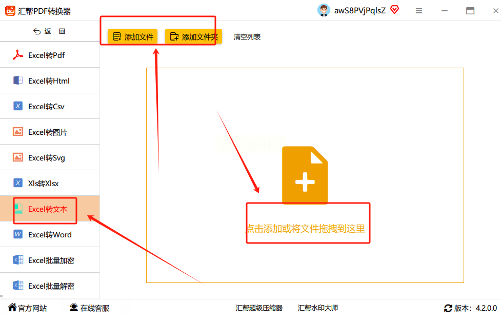 进入Excel操作界面后,左边会显示"Excel转文本"的选项,点一下。然后你看界面上有个"上传文件"的按钮,点它就能选你要转换的Excel文件了。最方便的是能批量选文件夹,比如你把一堆Excel都放在一个文件夹里,直接选这个文件夹,软件就自动识别里面所有表格,不用一个个点,省时间!