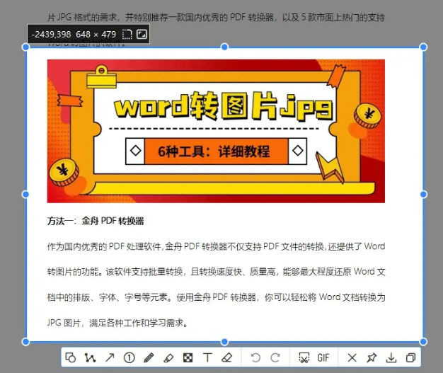 步骤三:用鼠标框选出需要转换为图片的文档区域。截图后,图片会暂存在剪贴板,屏幕右下角会有通知弹出。