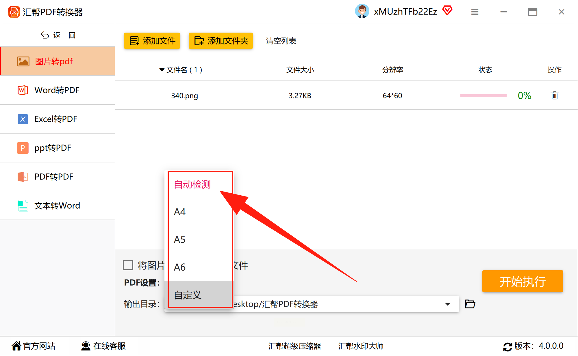 步骤三:设置PDF参数。软件会自动识别图片尺寸,不过你可以手动调整,比如选择"自动适应A4页面",这样生成的PDF页面大小就统一了。