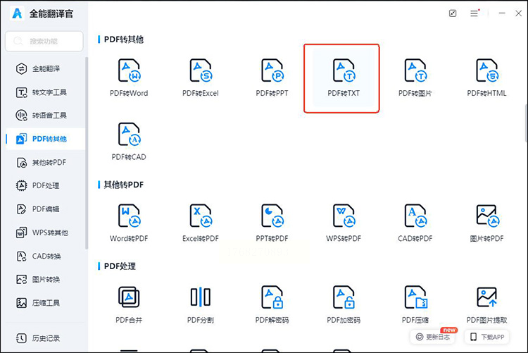 左边菜单栏里有个"PDF转文本"的选项,点它!这里的"文本"就是我们要的TXT格式啦,别担心选错,界面上看得很清楚。
