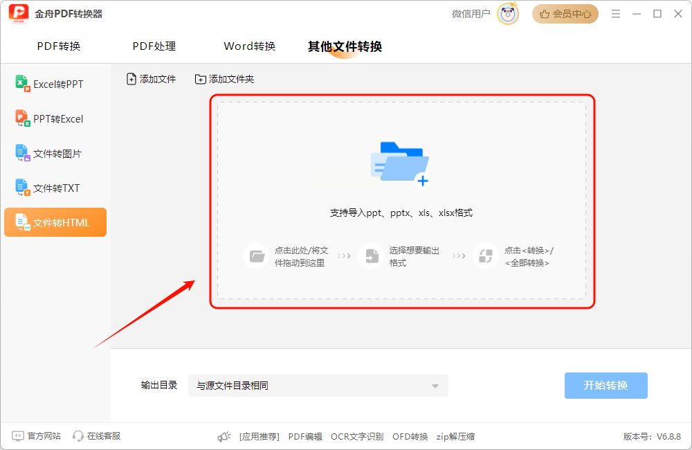 点左边栏的【ppt转html】,这时候会弹出一个添加文件的按钮,你可以一个个点,也可以直接把PPT文件拖进去,支持批量操作哦!比如你有20个PPT文件,直接选中拖进去就行,特别方便。
