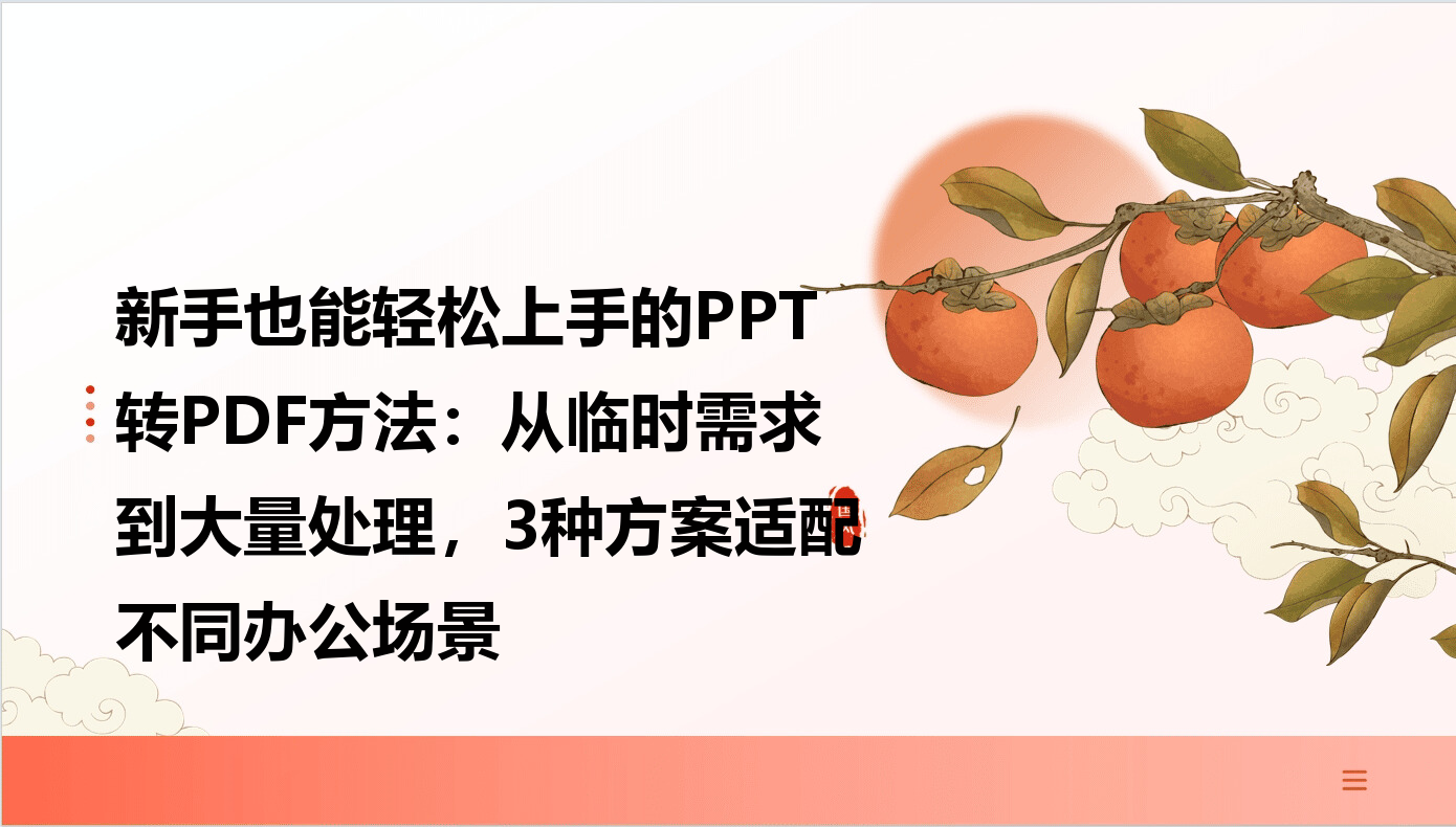 在日常办公中,我们经常会遇到需要将PPT文件转换为PDF格式的情况。无论是分享给同事、客户,还是在不同设备上展示,保持文件格式的完整性都非常重要。但很多人在转换过程中会遇到各种问题:单个转换效率低、批量处理复杂、转换后文件格式错乱等。今天就为大家分享3种实用的PPT转PDF方法,从简单操作到批量处理,让你根据需求快速找到合适的工具,轻松解决格式转换难题。