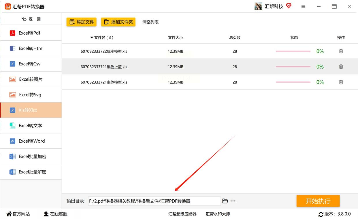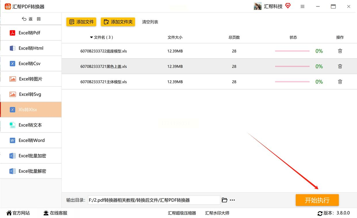 6. 开始转换:确认所有设置无误后,点击"开始执行"按钮,软件将自动完成转换。