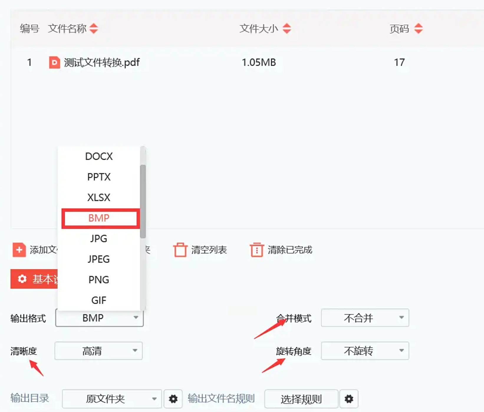 3. 配置输出设置:文件添加完成后,界面会显示详细的转换选项。在“输出格式”设置区域,从下拉菜单中选择“BMP”格式。接着,设置输出图像的分辨率(DPI值),更高的分辨率意味着更清晰的图像,但也会增加文件体积。同时,指定输出文件的保存位置,可以保留原文件夹结构或自定义新的存储路径。