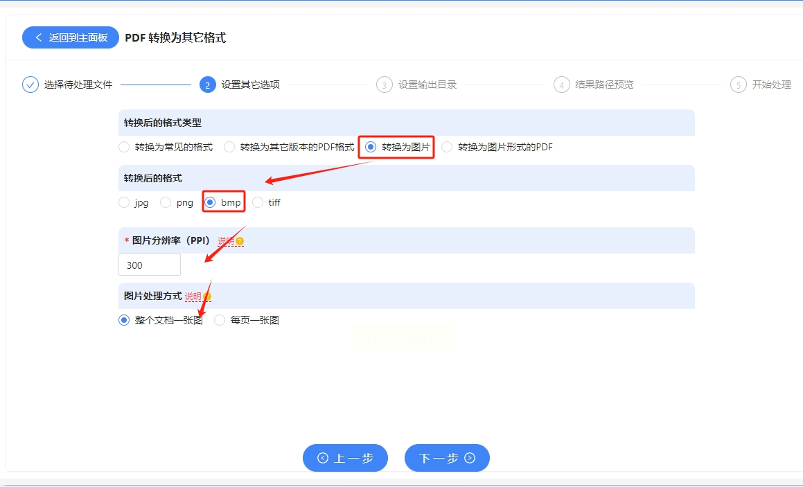 3. 详细参数配置:文件导入后,点击“下一步”或进入设置界面。首先选择转换类型为“转换为图片”,然后在输出格式下拉菜单中明确选择“BMP”。此时,您可以调整以下参数: