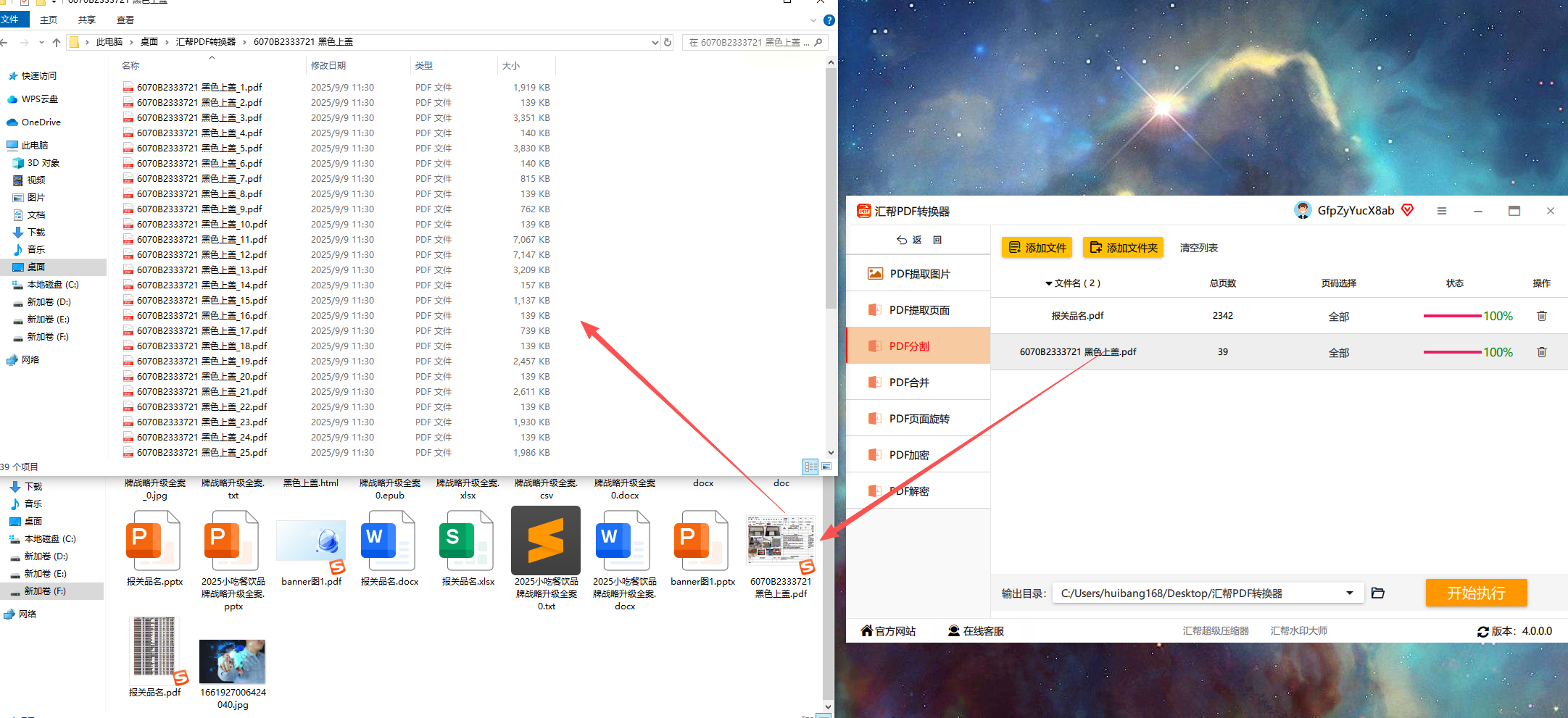 文件导入后,在下方找到“PDF分割”这个选项。点击它,软件会让你选择分割方式,比如按页数、按文件大小,或者自定义页码范围。根据你的需要选好。接着,很重要的一步是设置输出目录,也就是拆分后的文件保存在哪里。选一个你容易找到的文件夹。全部设置妥当,点击“开始执行”或“转换”按钮。软件就开始工作了,速度通常很快。