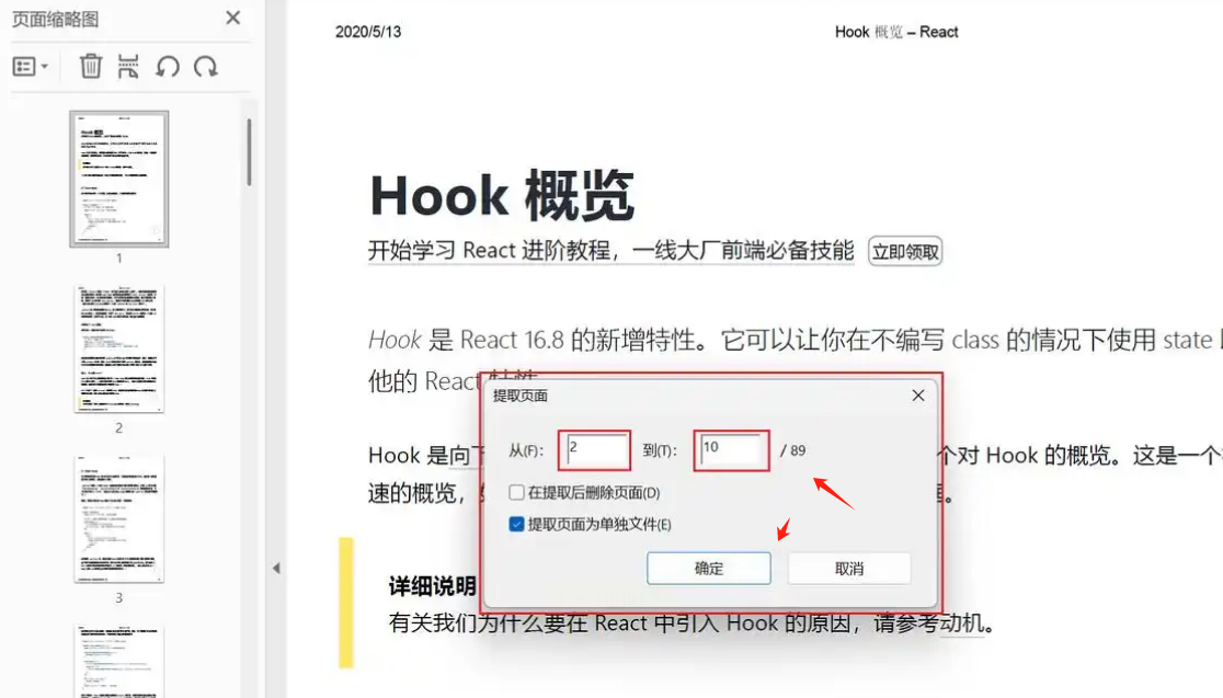 如果PDF里是连续的章节,比如第5-15页,直接在缩略图里从第5页拖到第15页,右键“提取”,比手动选页码快N倍!