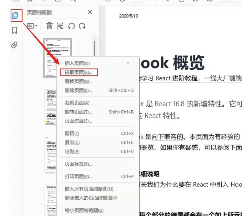 右键点击想要提取的单页或多页(按住Ctrl多选),选择“提取页面”。在弹出的窗口里,默认会按你选的页码提取,还能选择“另存为新PDF”或“附加到原PDF”,选前者更安全,避免覆盖原文件。