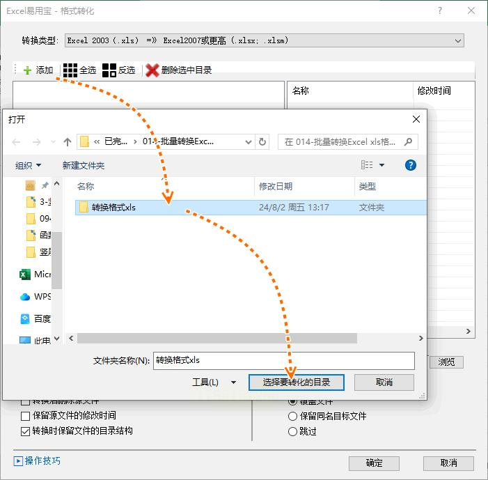 点击“添加目录”按钮,找到存放老xls文件的文件夹。软件会自动扫描里面的所有xls文件,列在下面的列表里。
