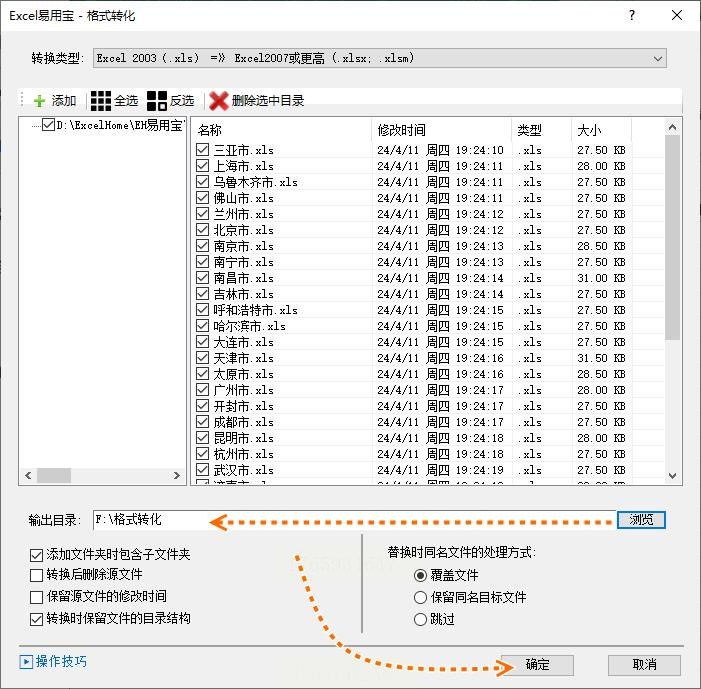 建议输出文件夹不要和原文件夹相同,免得新旧文件混在一起。你可以点“浏览”按钮,新建一个专门放转换后文件的文件夹。