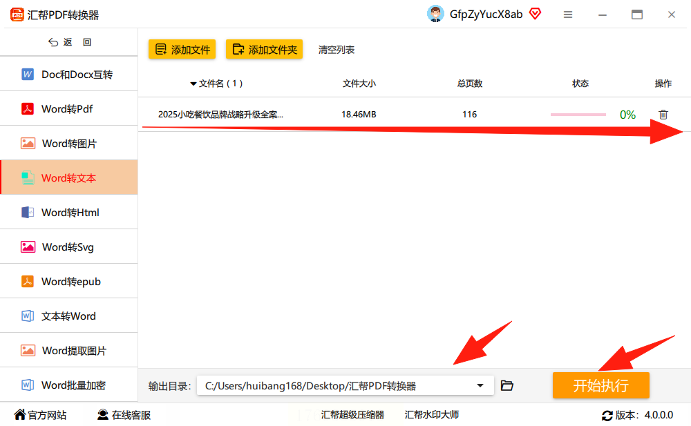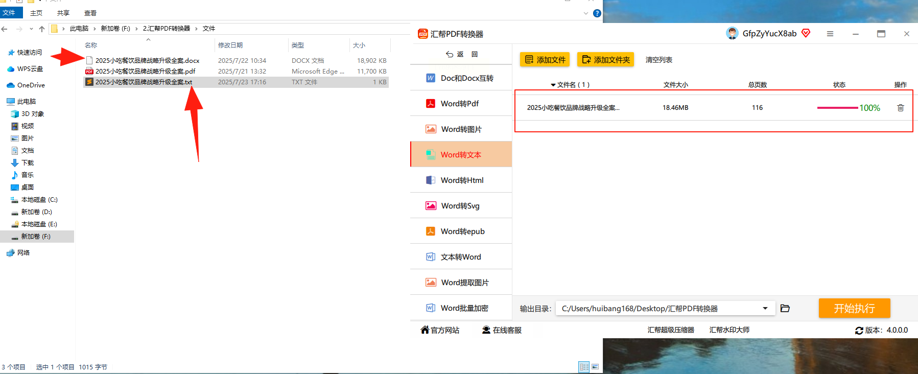 设置好输出目录后,点击“开始执行”按钮,软件就会自动开始转换。转换过程中你会看到进度条显示转换状态,等待一会儿,转换就完成了。完成后,你可以在刚才设置的输出目录里找到生成的TXT文件,原Word文档也会被完整保留,不会被修改。