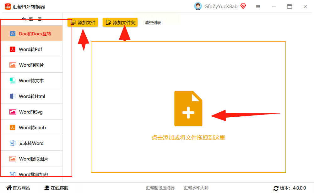 选择“word转文本”后,你可以看到左侧的功能区和右侧的操作区域。在右侧,你可以通过点击“文件上传”按钮,从电脑里找到需要转换的Word文档,也可以直接把文件拖拽到指定区域。更方便的是,汇帮PDF转换器支持批量上传多个文件,一次处理多个文档,提高效率。
