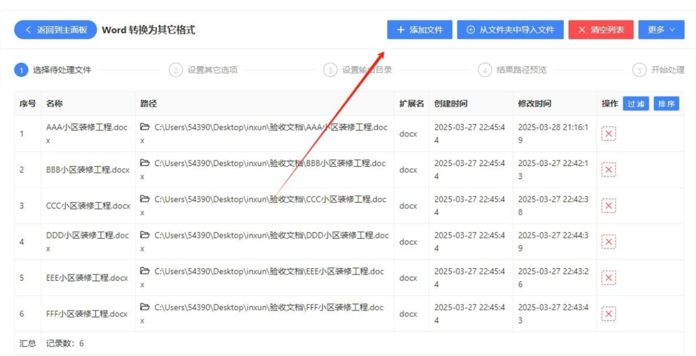 点击"添加文件"按钮时有个小技巧:按住Ctrl键能多选散落各处的文档,直接拖拽文件夹则自动识别所有支持格式。