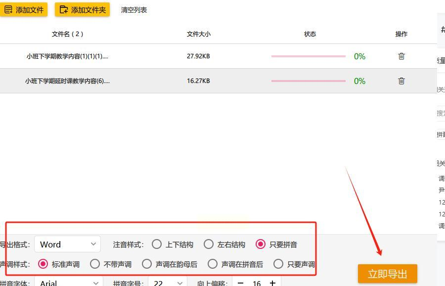 - 教学场景:小学语文老师需要为学生制作生字卡片,只保留拼音能帮助孩子专注于发音练习;