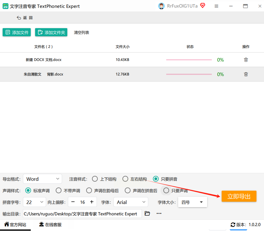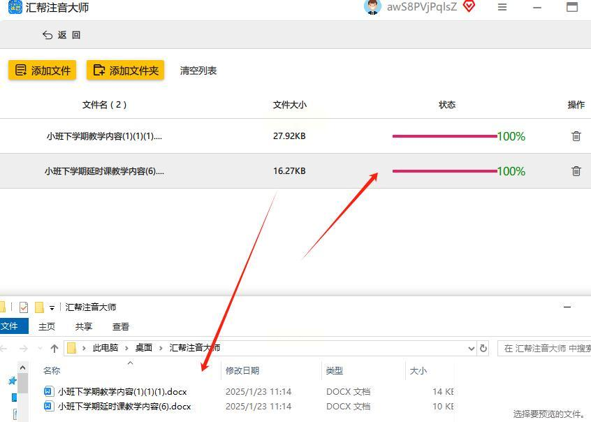 转换完成后,点击"下载"按钮,将生成的Word文档保存到本地。打开后即可查看只保留拼音的文本。