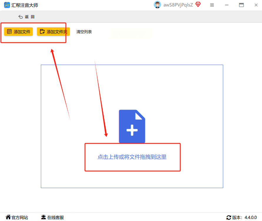 接下来,点击批量注音菜单,进入操作界面。你可以通过“添加文件”或“添加文件夹”按钮,把需要注音的文件导入进来。也支持直接拖拽文件,超级方便。而且,一次性可以添加多个文件,批量处理,效率超高。