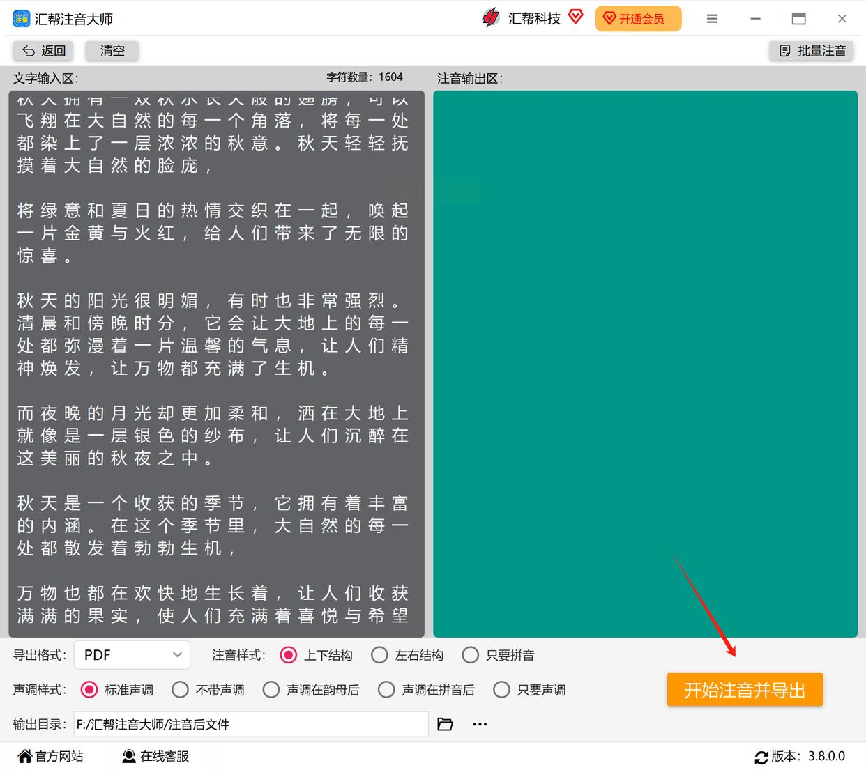 - 完成后在“输出目录”中查看结果,建议先预览5-10页,检查拼音准确性(常见错误:多音字标注不全,需手动修正)。