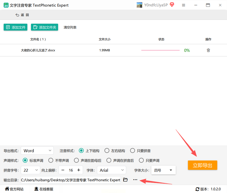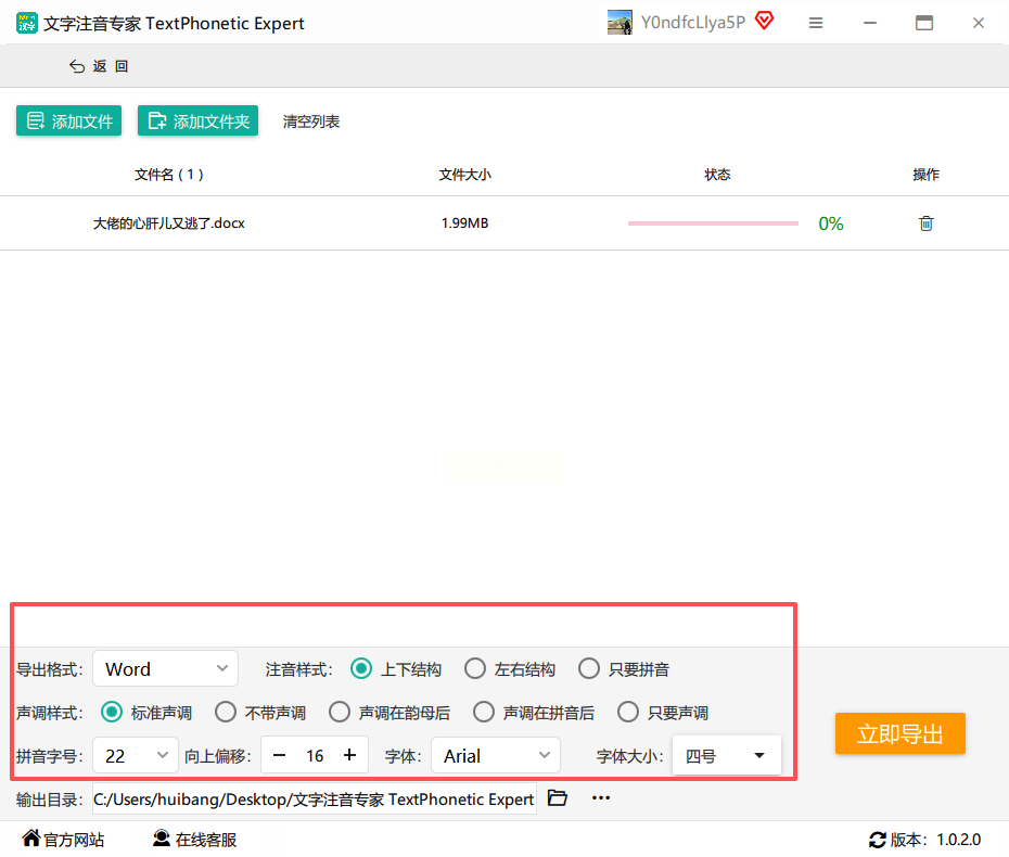 3. 导出格式:支持Word、PDF、TXT,还能选“纯拼音”模式(就是只显示拼音不带汉字,适合打印给孩子默写)