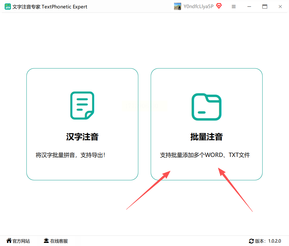 1. 打开软件后点“批量注音”(和文字注音专家类似,功能入口一致)