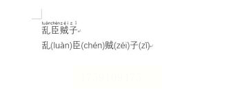 1. 打开Word,输入需要注音的文字,比如“乱臣贼子”。