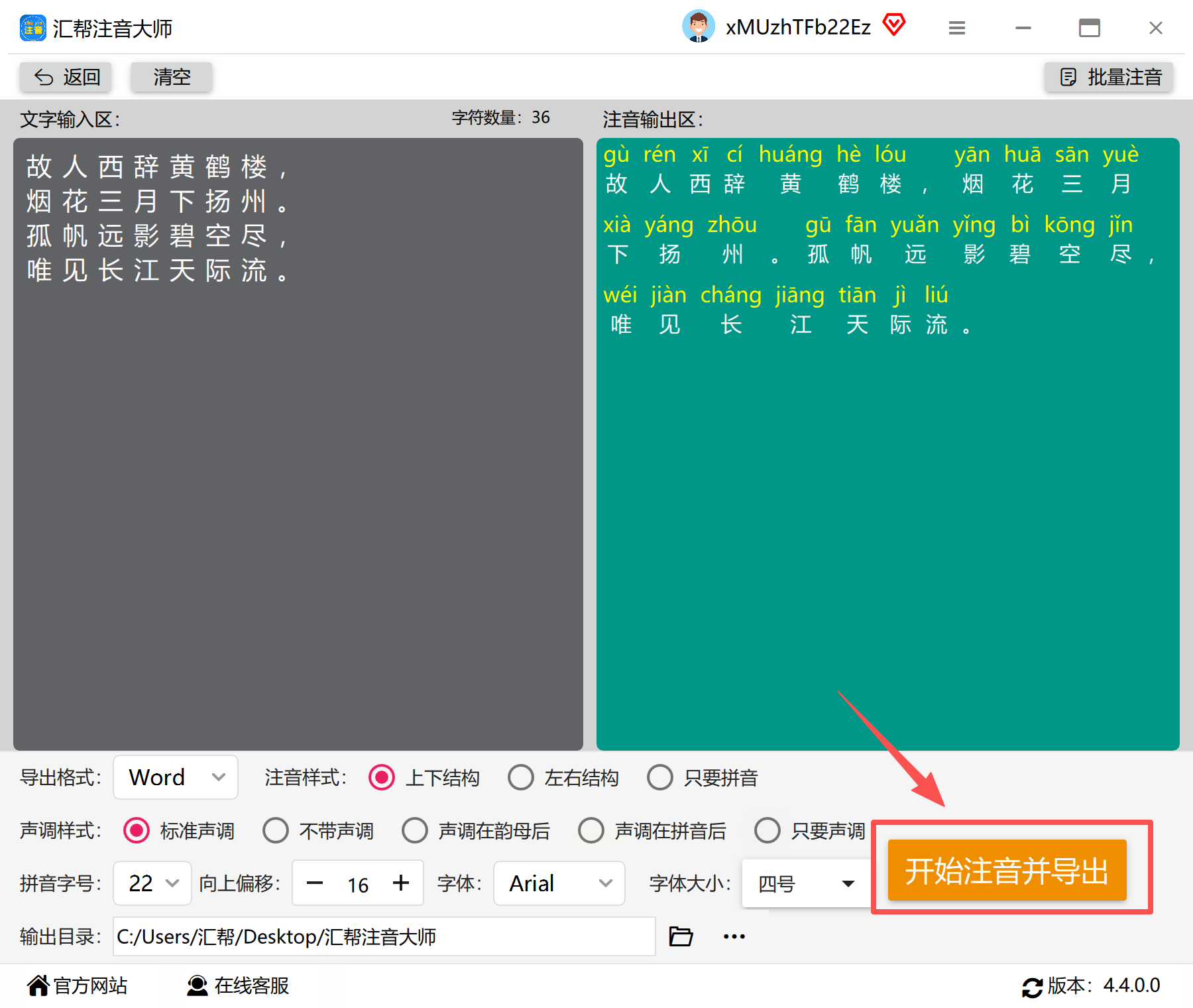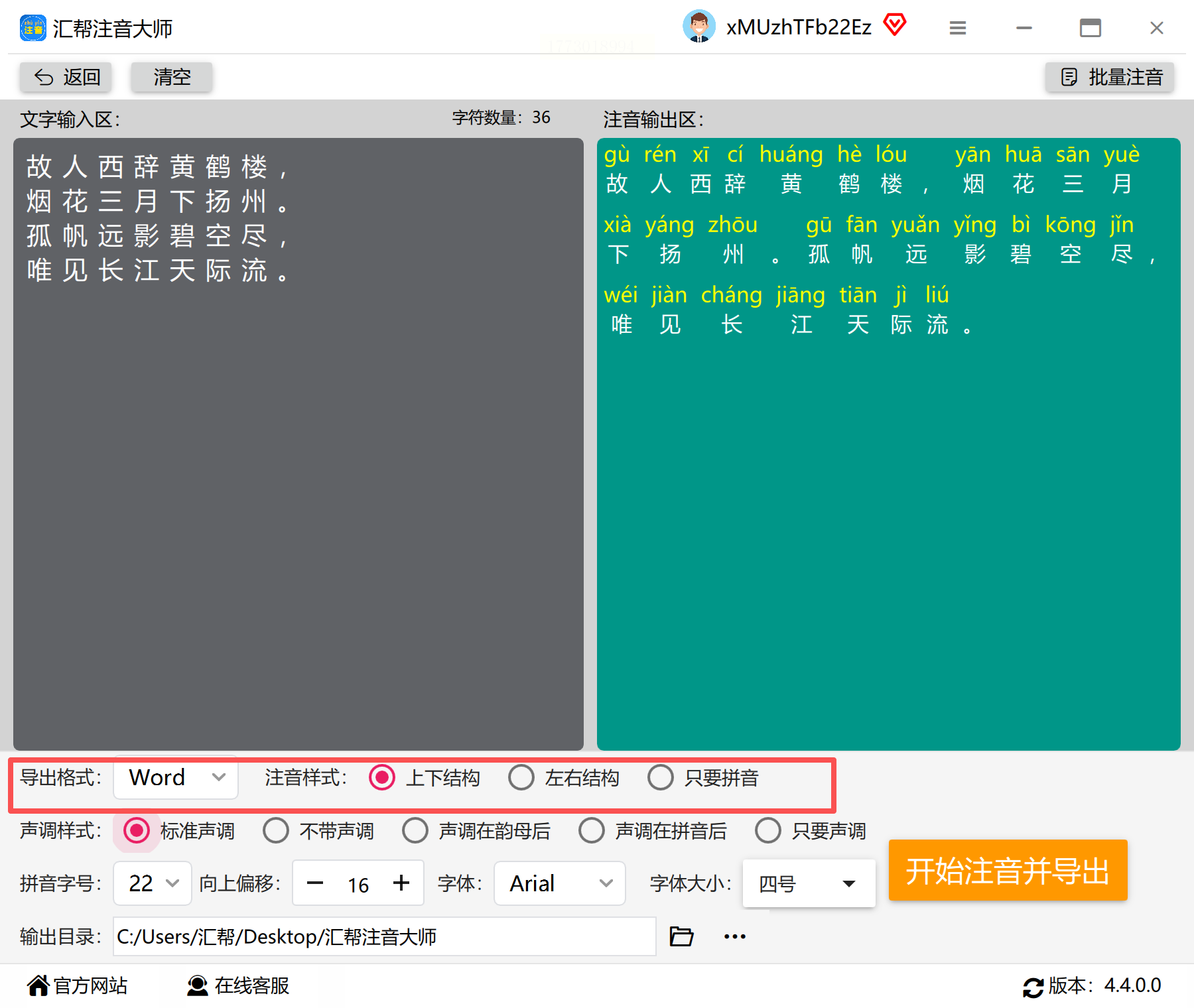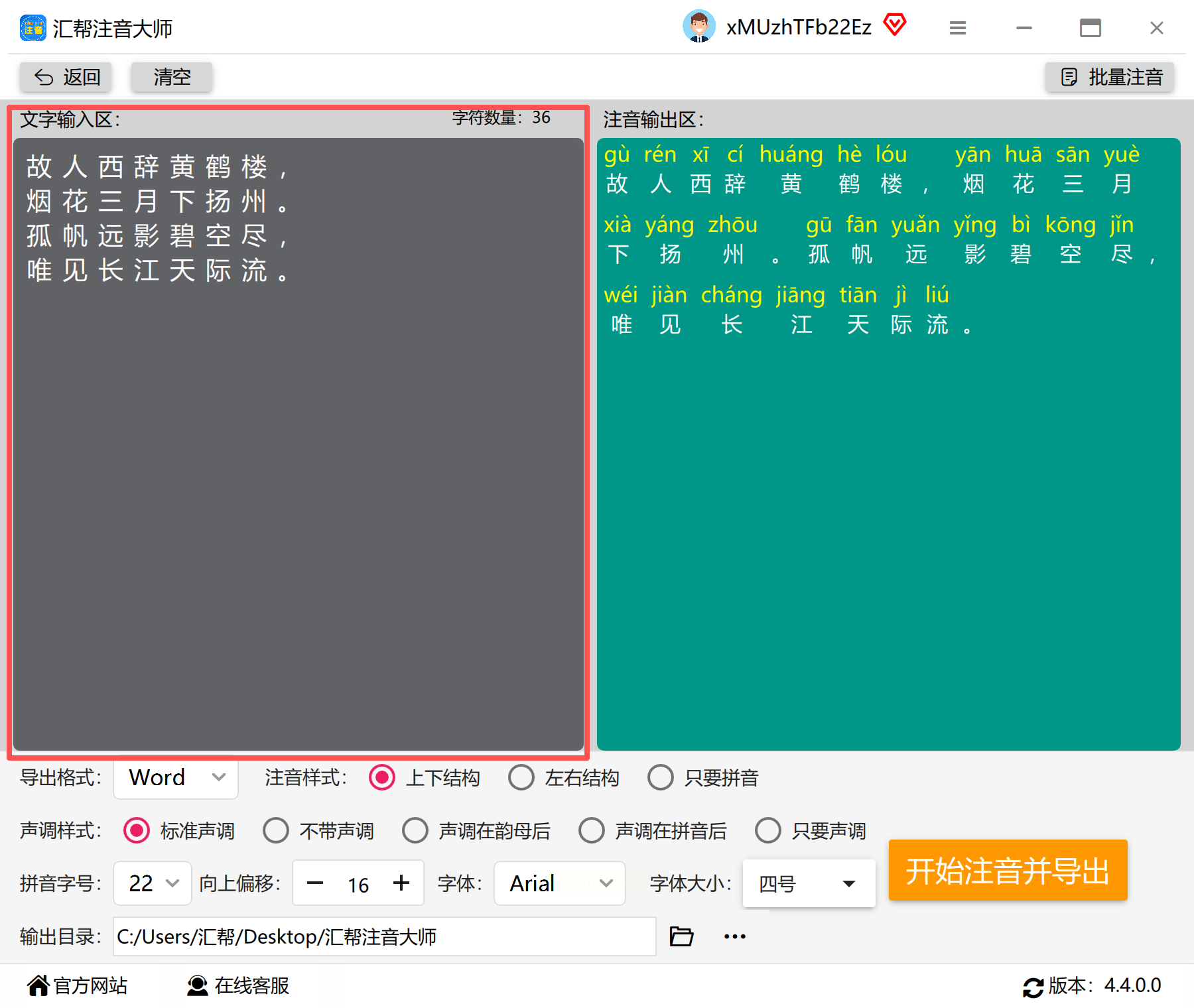 如果你主要在电脑上处理文档,汇帮注音大师会是高效的桌面解决方案。它提供了完整的批量处理功能,特别适合需要为大量文本添加拼音注释的办公场景。