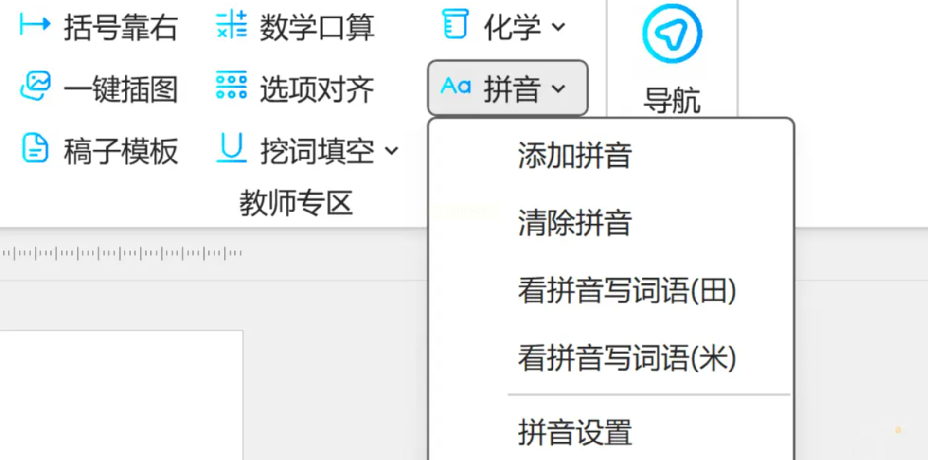 2. 选中文本后,点击插件按钮,即可一键为选中文字添加拼音