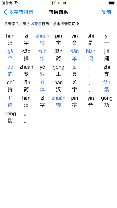 3. 遇到多音字时,只需轻触上方显示的多音字区域,就会展开读音列表供选择