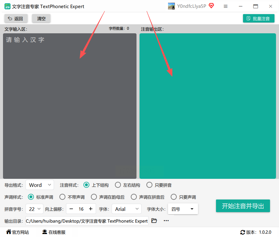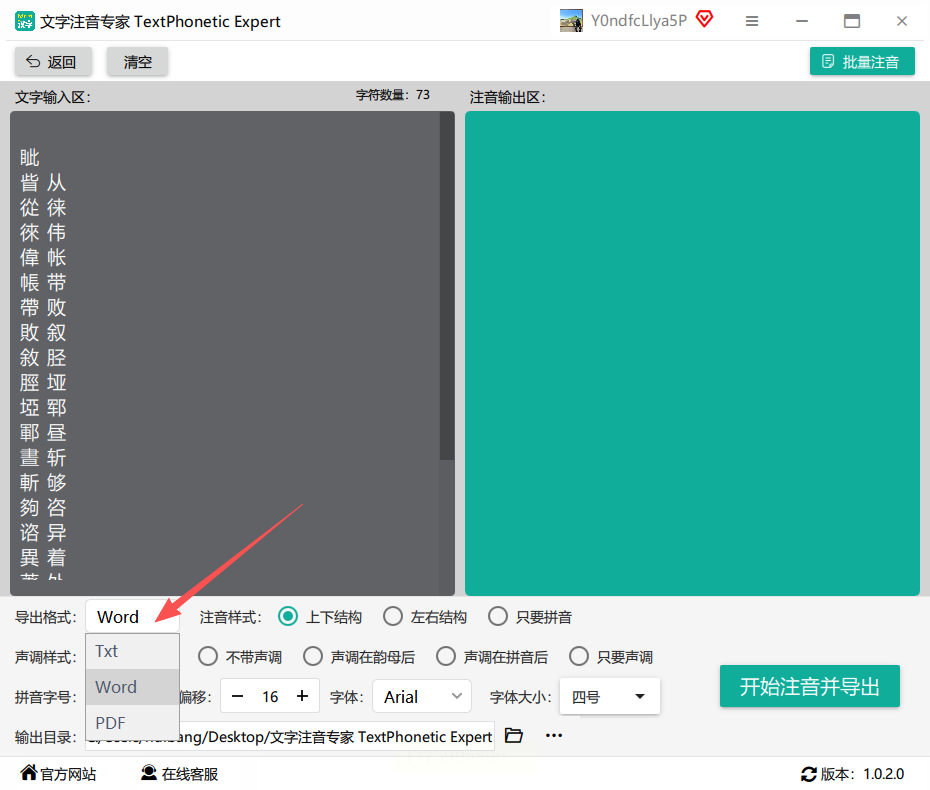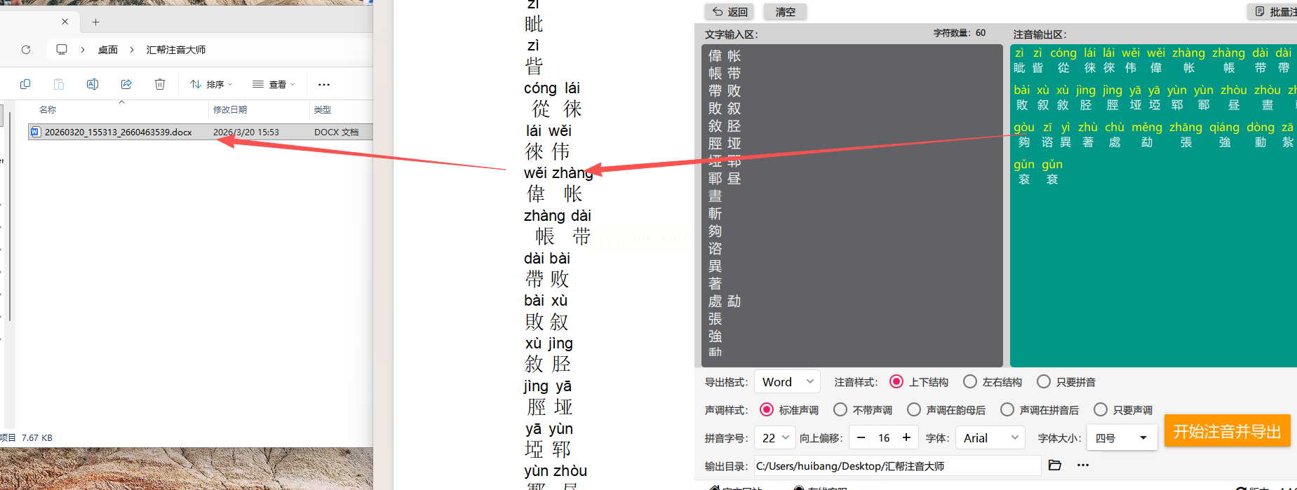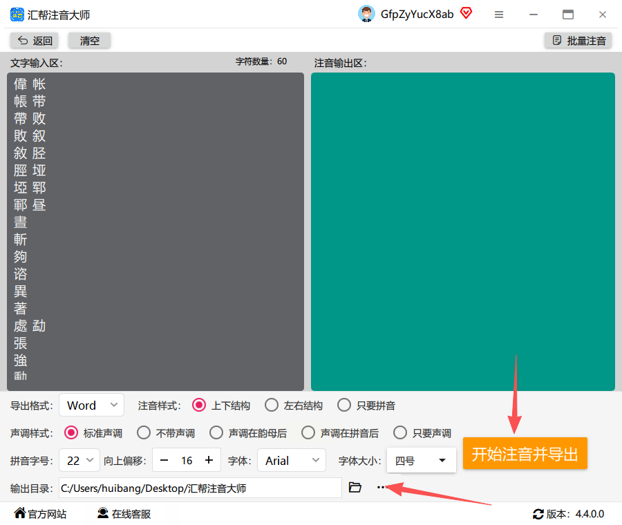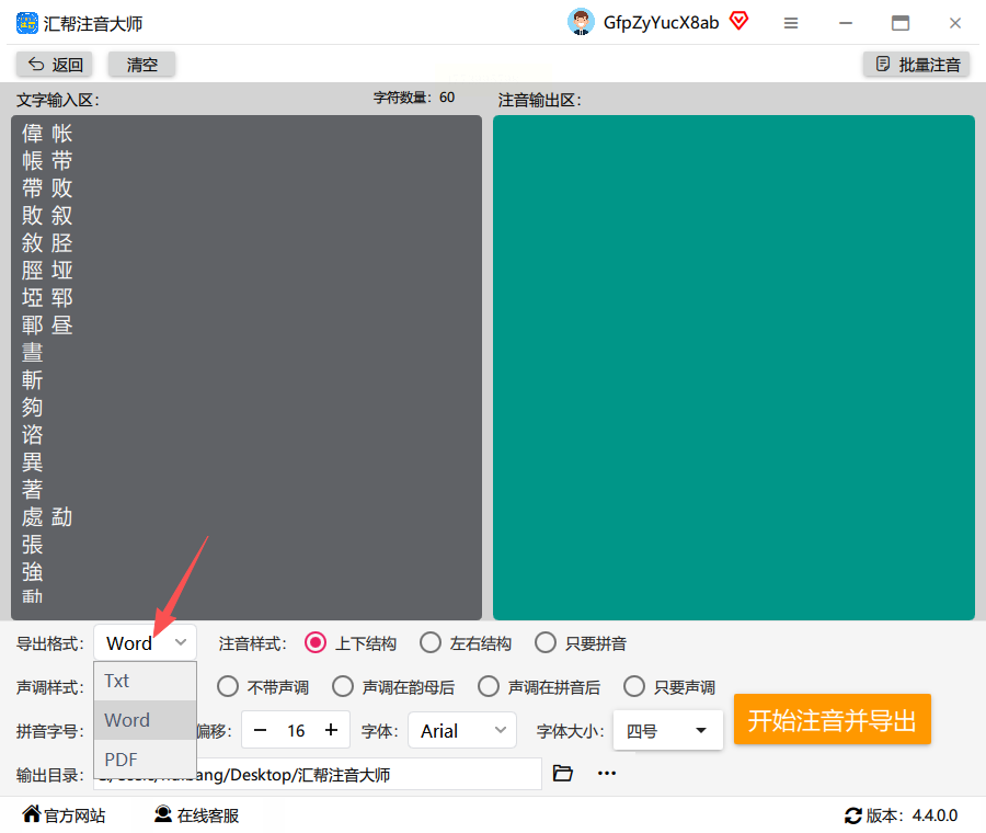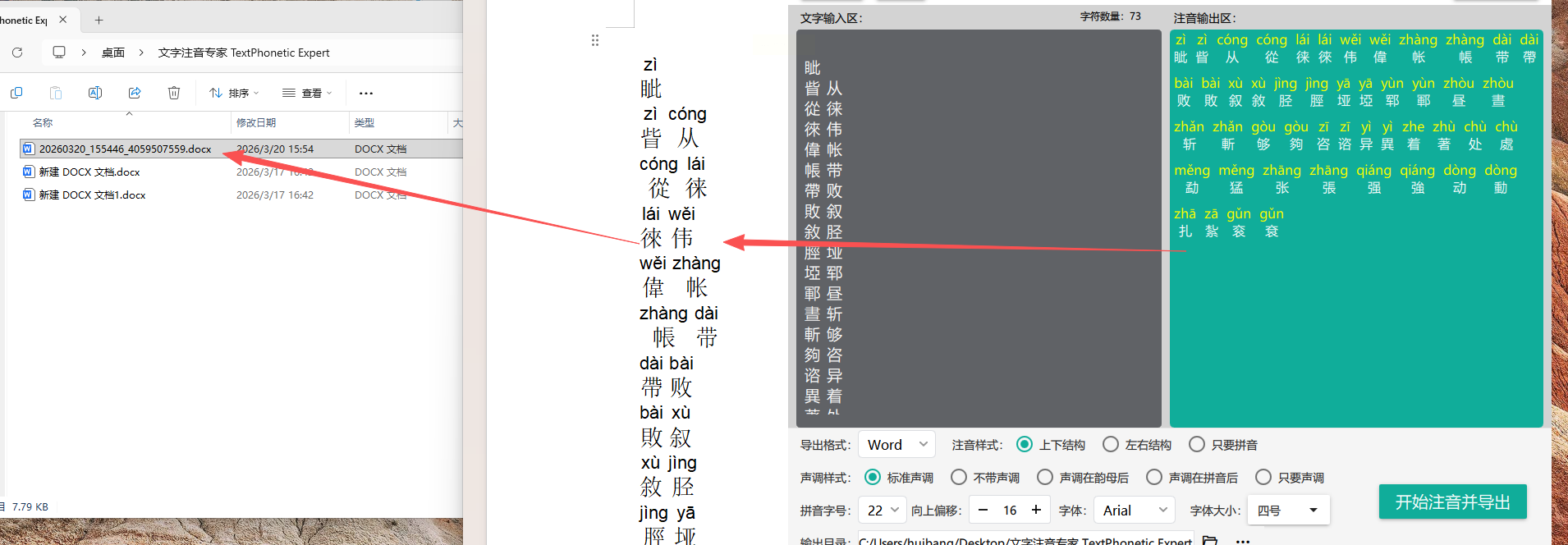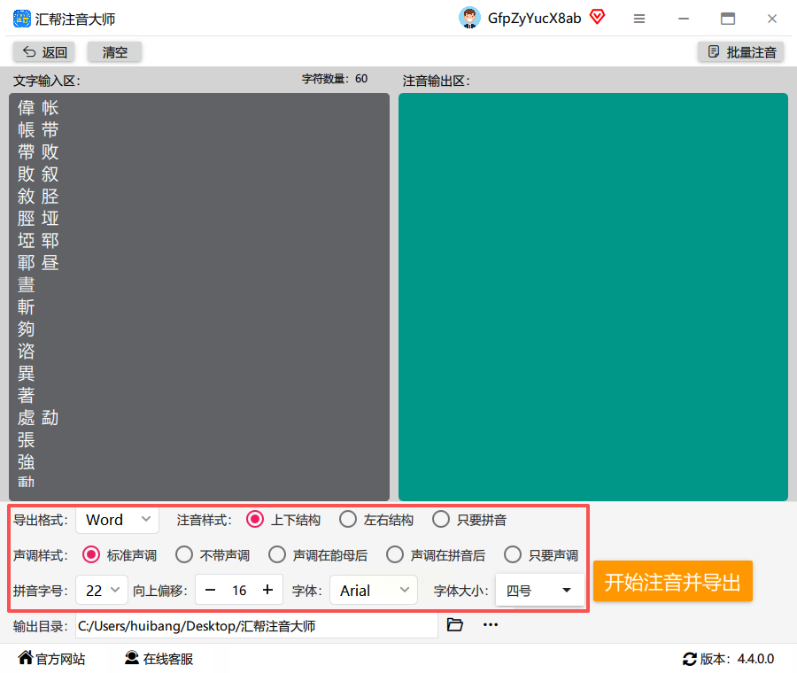 5. 选好输出文件夹,点"开始注音并导出",稍等几秒就会自动弹出结果文件夹