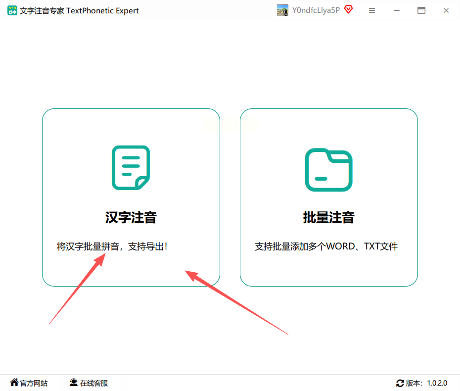 1. 打开软件后选"汉字注音"(界面和汇帮注音大师类似,但更像教学工具)